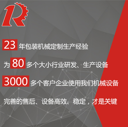 廣州市睿佳機械設備有限公司是國內專業(yè)從事自動化包裝機械產(chǎn)品,集研發(fā)、生產(chǎn)、銷售、服務于一體的制造公司,已通過ISO9001:2008質量體系認證,部分系列產(chǎn)品已通過歐盟CE認證。 經(jīng)過多年的發(fā)展,公司專業(yè)生產(chǎn):封尾機,灌裝機,旋蓋機,貼標機,包裝機,輸送機,噴碼機,灌裝生產(chǎn)線等機械設備。企業(yè)以開發(fā)生產(chǎn)包裝機械和訂做特殊包裝機械為主,所生產(chǎn)的包裝機械在同行和客戶中都得到一致的贊賞,以高技術和穩(wěn)定的質量遠銷東南亞和歐美。在國內,也成為多家知名藥廠、食品廠、化妝品廠指定使用產(chǎn)品。 睿佳機械:“想客戶之所想,急客戶之所急”既是睿佳對廣大客戶的承諾也是睿佳的宗旨,睿佳將與時代同步、銳意進取,以更優(yōu)質的服務回報廣大客戶對睿佳的信賴和支持。